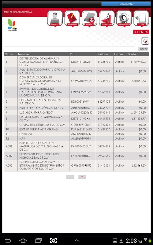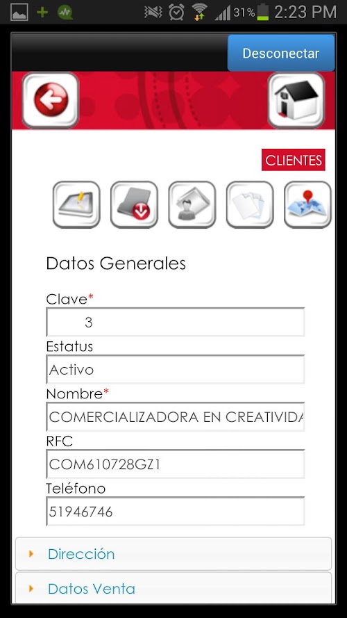 a) Customers. This module allows customers to register and modify the information of those registered in Mobile and SAE-SAE 5.0 Aspel, view client consultation and issue the Report of the State General Account, the contact list of each client and access Google Maps to find the location of these.