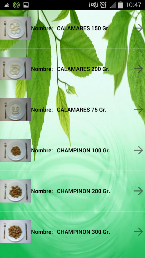 -Iván González Rincón.With this application you can access a complete list with details of various foods, differentiated by different weight rations in which it reports its different components and nutritional intake.