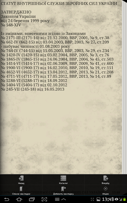 Со всеми приложениями и картинками.Combined arms regulations of the Armed Forces of Ukraine for Android: