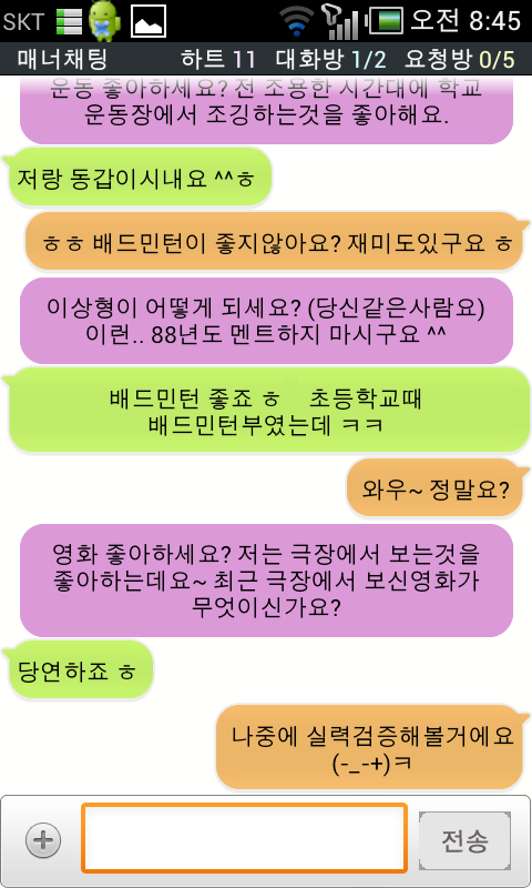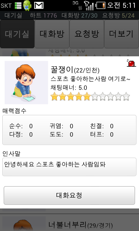 -초반의 어색함을 달래기위해 90초당 시스템에서 중매멘트를 날려줍니다. 두분이서 대화하실분들은 신경쓰지말고 대화하시면 됩니다.