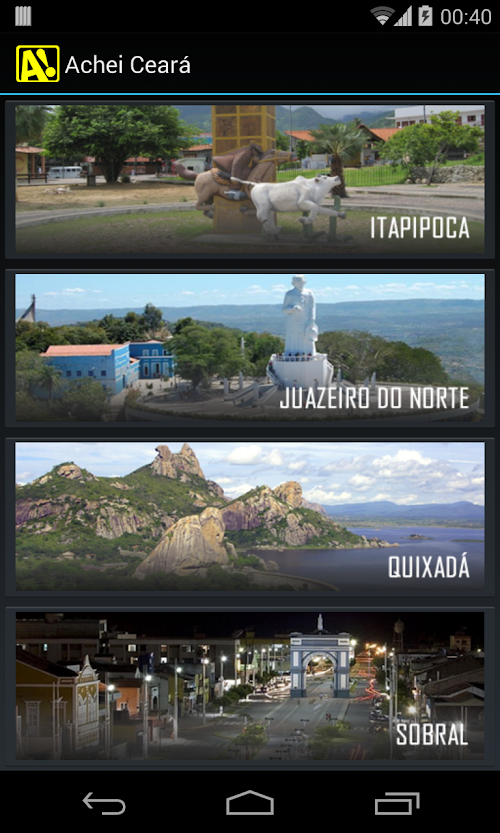 Contém também os principais eventos, baladas, um completo Portal de Notícias e os pontos turísticos da sua cidade, facilitando sua busca.The state of Ceará, now has an official app for the location, it can get you all the details of the various segments of their city, as restaurants, gyms, hotels, shops etc..