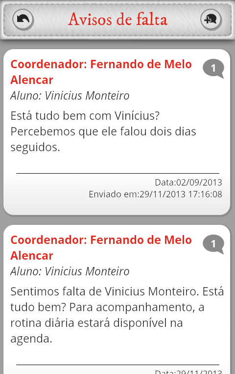- Avisos enviados pela equipe pedagógica e pela diretoria;