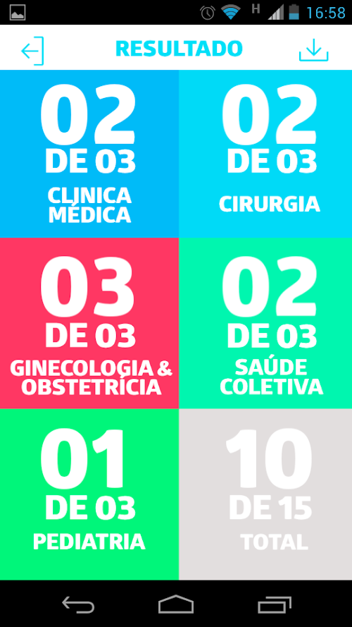 - Resultado da "Prova Rápida" dividido por matéria e com a opção de salvar no seu álbum de fotos.