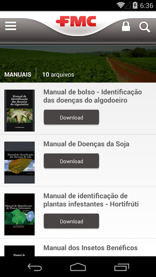 Quer saber todas as novidades da FMC? Baixe o aplicativo e você vai conhecer as soluções da empresa, receber um conteúdo exclusivo para ler na palma das suas mãos alem de ter acesso ao maior acervo fotográfico agrícola brasileiro.Want to know all the news from FMC? Download the app and you will know the solutions company, receive exclusive content to read in the palm of their hands besides having access to the largest photographic Brazilian agricultural acquis.