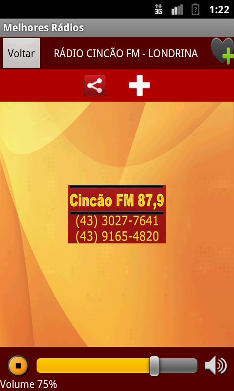 São mais de 12.000 emissoras de rádios e mais de 100.000 dados de cantores na sua mão. Charge the best web radios and radios in Brazil and the World in your pocket and listen anytime you want.