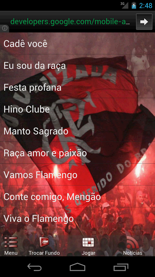 Flamengo - "Músicas da Torcida" produzido pela Planeta Android, tem como intenção difundir as músicas mais cantadas nos estádios de futebol, quando o Flamengo está em campo.