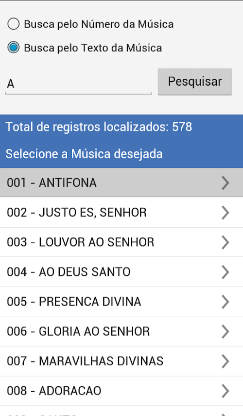 Pesquisa pelo número do hino.