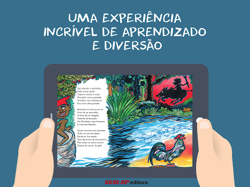 O app conta com narração e elementos animados que interagem e complementam a narrativa.
