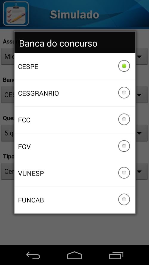 2) Crie simulados com os assuntos que deseja e com quantas questões quiser.