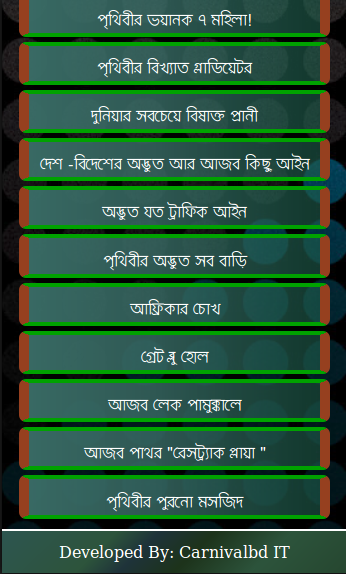 আমরা স্বভাবতই এই রকম অদ্ভুত ধরনের জিনিস দেখতে ও জানতে পছন্দ করি। আমাদের এই এপ্লিকেশনে পৃথিবীর নানাপ্রান্তে ছড়িয়ে ছিটিয়ে থাকা অদ্ভুত জিনিসগুলো নিয়ে বিস্তারিত বর্ননা ও রিলেটেড ছবি দিয়ে সাজিয়েছি।