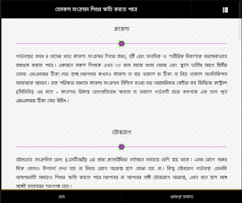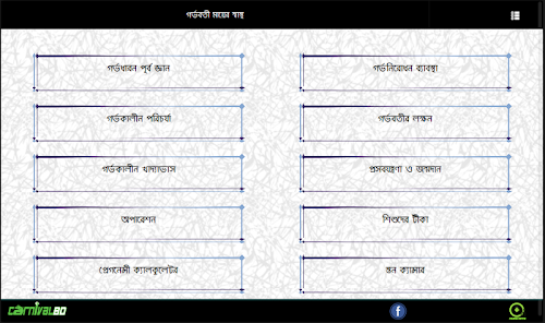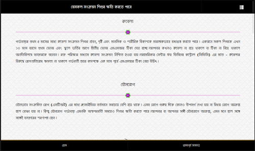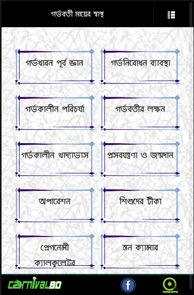 প্রায় প্রতিদিন ২২ জন মা প্রান হারাচ্ছেন সন্তান জন্ম দিতে গিয়ে এই সম্পর্কে আমাদের জ্ঞান না থাকার কারনে। সবাইকে সঠিক জ্ঞান সরবরাহ করার উদ্দেশ্যে আমাদের এই বিশেষ এপ্লিকেশন। এছাড়াও যোগ করা হয়েছে দরকারী প্রেগ্নেন্সী ক্যালকুলেটোর। এপ্লিকেশনের মাধ্যমে বিস্তারিত জানতে পারবেন,
