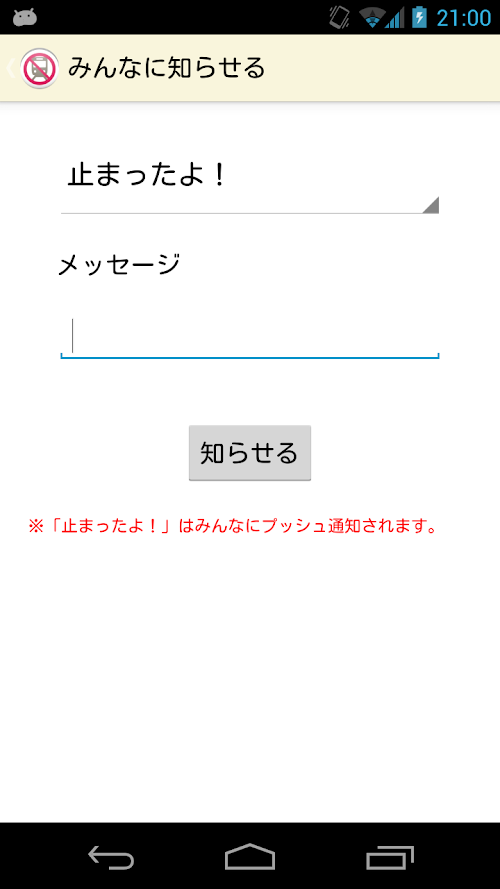 「運転見合わせ」などに遭遇した時は「止まったよ!」を送信するとみんなにプッシュ通知されます。