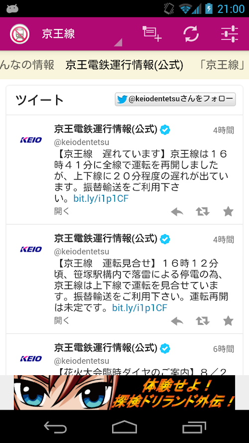Please refer to it because it becomes to be able to also view and tweets information of others, official twitter of Keio, others within the app after you have received a "! I stopped".