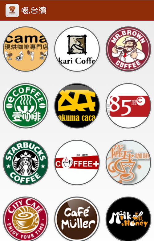 v9 更新介面 新增 曼咖啡, 西雅圖咖啡(Famonn Coffee), 丹堤咖啡