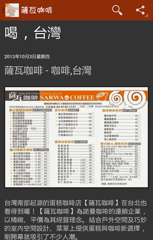 These menus are made from the web search, if you usually go with the app stores information and different, please inform "coffee - Taiwan"
