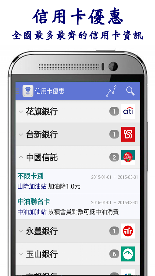 使用者可以依自己需求,指定搜尋某家銀行信用卡。