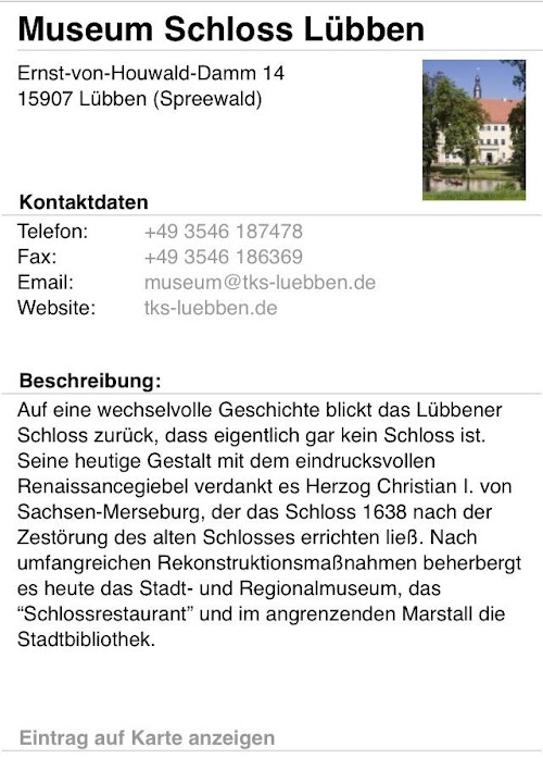EINIGE FEATURES DES CITYGUIDE Lübben IM ÜBERBLICK: