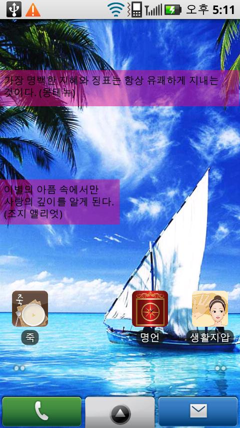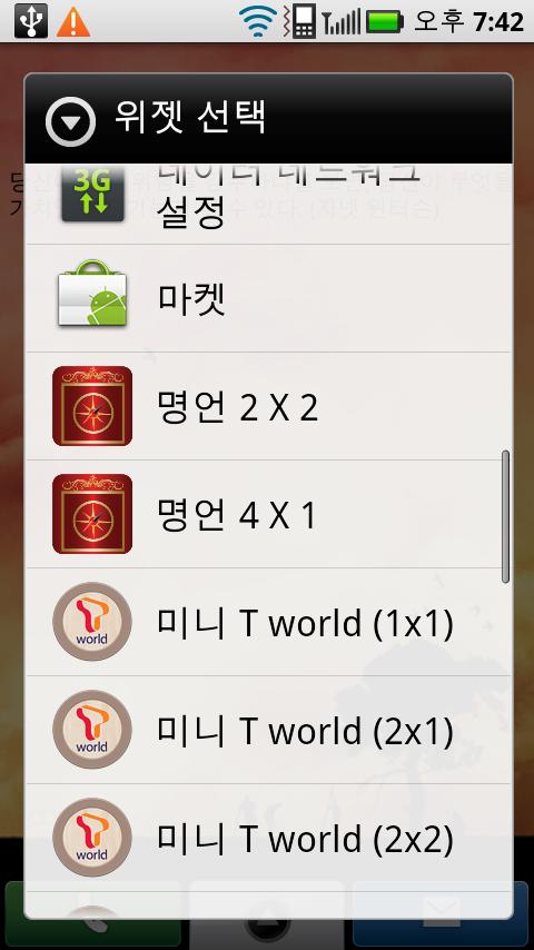 주의사항 : 전원을 끈후 다시 시작했을경우 , 명언아이콘을 통해 어플 실행후 , 위젯 배경을 다시 설정하신후에 전원을 살짝 눌렀다 켜시면 정상 작동합니다. "