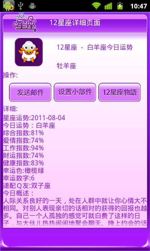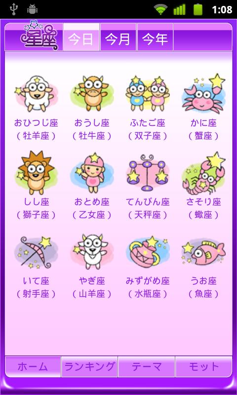 今日の運勢、ランキング、星座の物語、2012の運勢、毎月の運勢など。