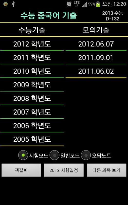 기출문제외에 HSK5급 단어장, HSK6급 단어장, 수능외국어, 수능국사, 수능세계사, 수능물리 등 기타 수능과목 앱과 연결되는 링크도 제공합니다.