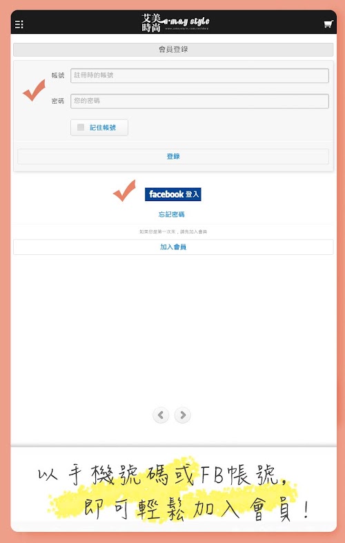 ※用Facebook帳號或手機號碼即可輕鬆加入會員!