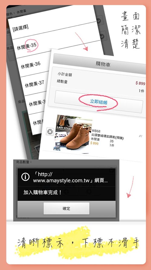 This version of 艾美時尚官方網站:流行平價女鞋,打造女孩們的美麗國度 Android App comes with one universal variant which will work on all the Android devices.