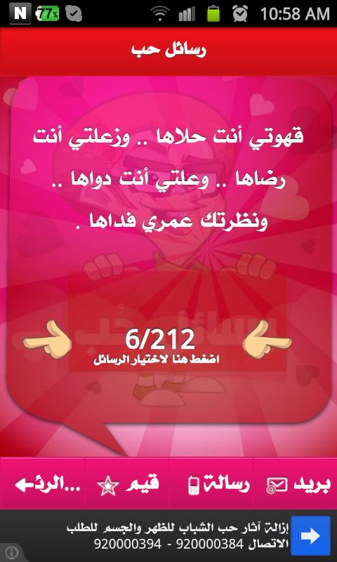 رسائل حب مسجات حب رسايل حب حبيب غرام عشق زوج زوجة زوجي زوجتي حبيبي حبيبتي مضحك فللة بنات شباب صبايا أولاد مزز فلة لعبة حب ألعاب حب قبلة بوسة حياة زوجية علاقات شرعية خطبة خطيبة زفاف عرس حفل زواج عيد الحب عيد العشاق فلنتاين فلانتاين