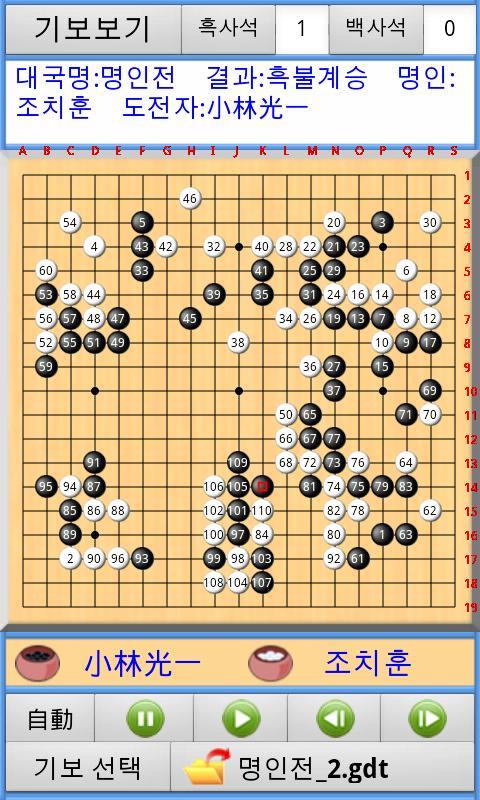 3. 90여개 이상의 유명 대국 기보를 검토할 수 있고 또한 최신의 기보를 자신이 직접 입력및 저장하여 바둑을 익힐 수 있도록 하였습니다.