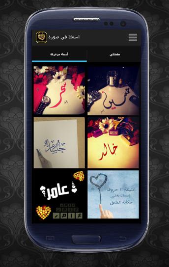 مع تطبيق اسمك في صورة-أسماء مزخرفة يمكنك إختيار اسمك(اسماء بنات اسلامية،اسماء اولاد اسلامية،اسماء بنات اجنبية) من بين الاف الصور لزخارف اسماء متميزة ومتجددة باستمرار