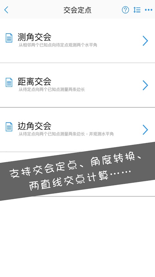 便捷的测量计算器,包括坐标正反算、控制测量导线计算、水准高程的平差、交会定点、角度转换……