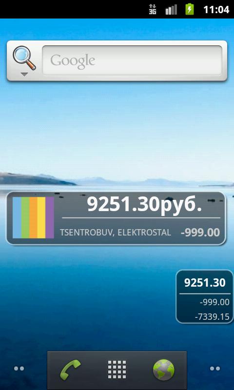 - Виджет на рабочий стол, отображающий баланс и последнюю операцию
