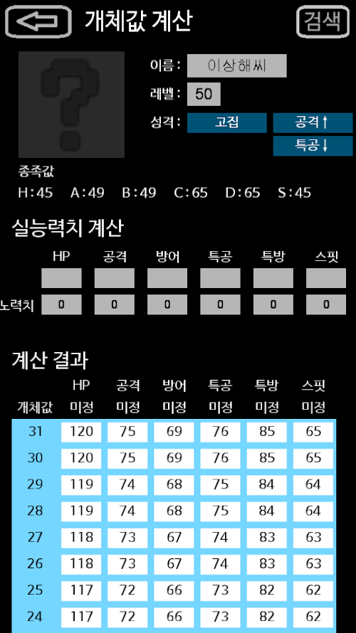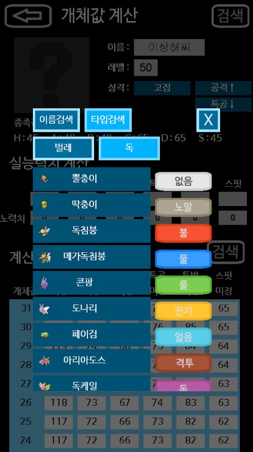 - 성격, 노력치를 입력하여 포켓몬의 개체값을 계산 할 수 있습니다.