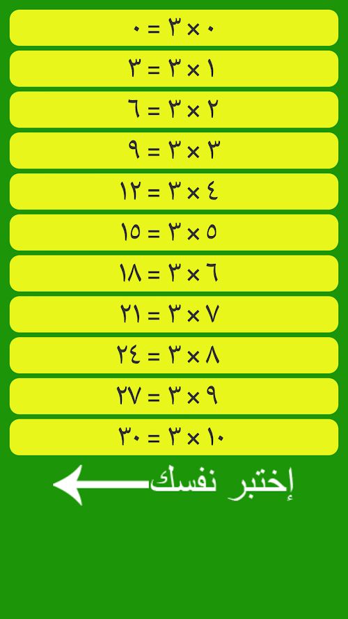 - صفحة إختبار خاصة بكل جدول , ليتمكن التلميذ من قياس مستوى حفظه