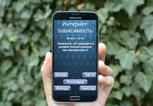 *Возможность делиться результатом с друзьями.Test Kimberly Young on Internet addiction - a psychological test designed to determine the presence of Internet addiction.