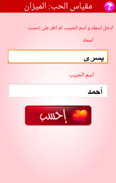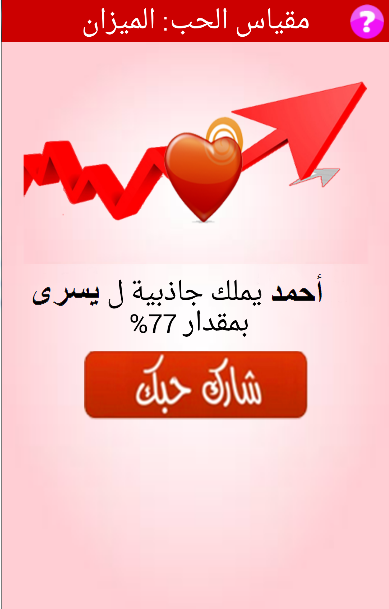 آلة الحب: تحدد لك نسبة التوافق بينك و بين حبيبك أو حبيبتك و يمكنك من خلالها أن تشارك النتيجة مع اصدقائك من خلال وتس آب، أو البريد الالكتروني، الفييسبوك::
