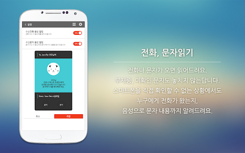 전화, 문자, 부재중 등의 모든 상황들을 음성으로