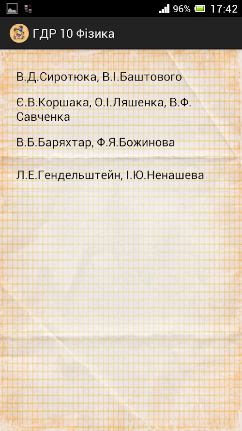 This version of ГДЗ 10 Фізика Android App comes with one universal variant which will work on all the Android devices.
