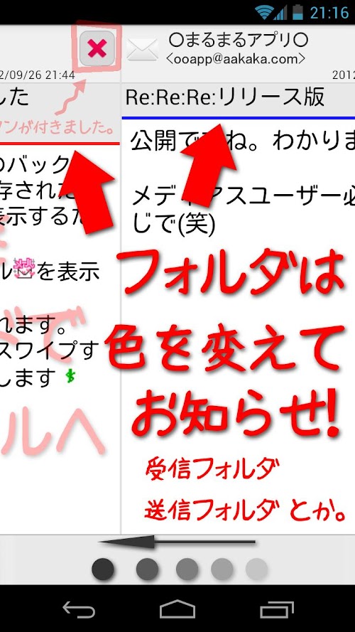 送信メールのフォルダ、受信メールのフォルダの様に複数のフォルダにメールをバックアップしている方のために、フォルダごとにメールを色分けして表示するようになっています。