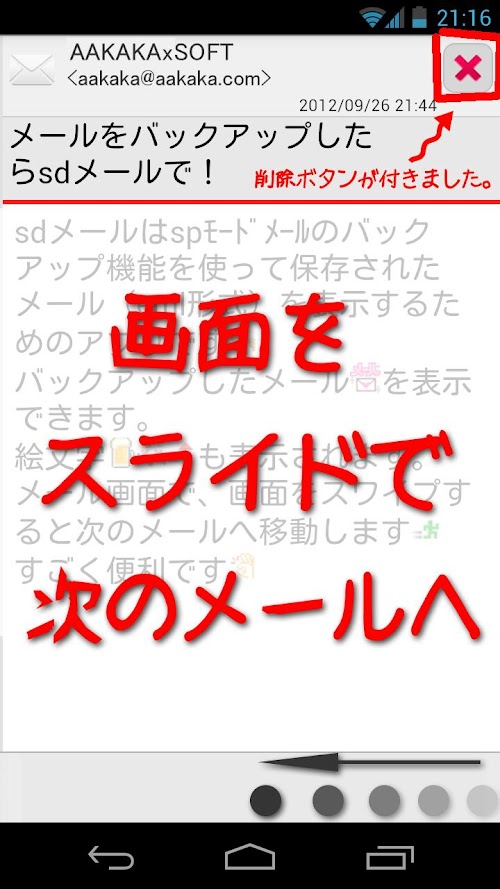 sdメールはドコモメール、spモードメールからSDカードにバックアップとして保存したメールデータを表示するアプリです。