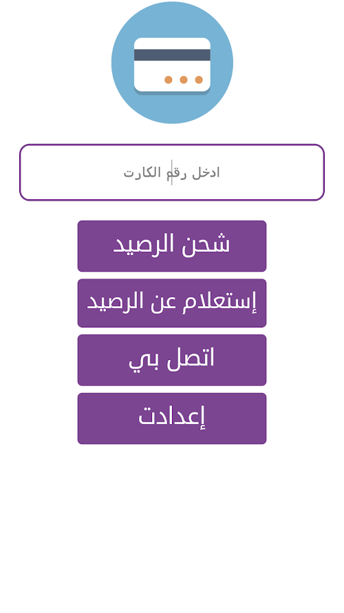 برنامج بسيط يقوم بتسهيل عمليه الشحن وخدمة اتصل بي وخدمة الاستعلام عن الرصيد
