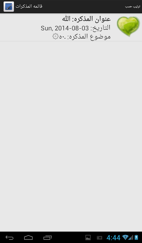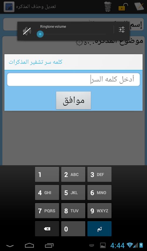 تطبيق المذكره السريه الغرض منه حمايه مذكراتك.فكثيرا ما نريد كتابه مذكرات ولا نريد لاحد قرأتها.ولذلك قمنا بعمل هذا التطبيق من اجلكم.التطبيق لا يمكن الدخول اليه الا بكلمه سر يحددها المستخدم.وفى حاله معرفه احد لكلمه السر لا يمكنه قرأه مذكراتك لان التطبيق يقوم بتشفير المذكرات ولا يمكن لاحد قرأتها الا عن طريق كلمه سر أخرى تحددها انت.نتمنى ان يحوز التطبيق على اعجابكم وفى انتظار تقييمكم للتطبيق.والله المستعان.Application memo purpose of protecting your diaries. Often want his diary and do not want anyone to read it. Therefore we made this application for your sake. Application can not access him only with a password specified by the user. And in the knowledge that a single password can not read memoirs because the application does encrypts the notes can not be read to one only by other passwords you set. We hope that this application has to like it and was awaiting your assessment of the application. and God.