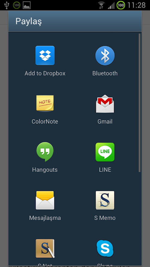 *Paylaş ve kopyalama seçenekleri ile programdan veri alarak cihazınızda kullanabileceksiniz.