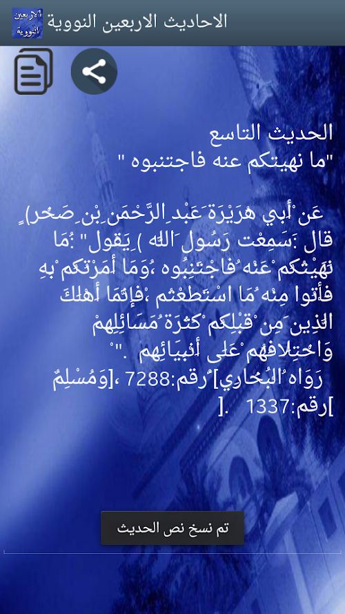If you are looking to download other versions of الاحاديث الاربعين النووية Android App, We have 2 versions in our database. Please select one of them below to download.