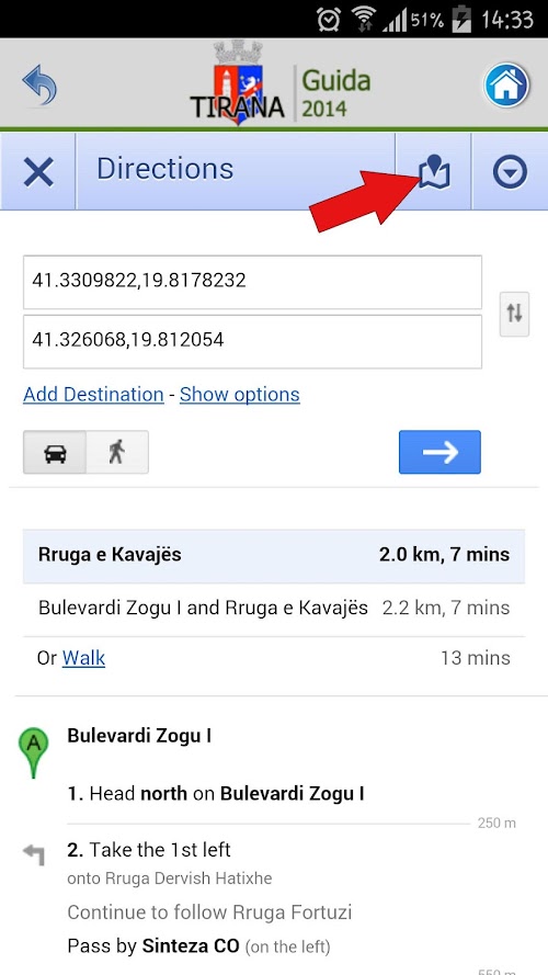 Guida e Tiranës ka një integrim të plotë me aplikacionin Google Maps, ku mund të shihen edhe vlerësimet për çdo destinacion.