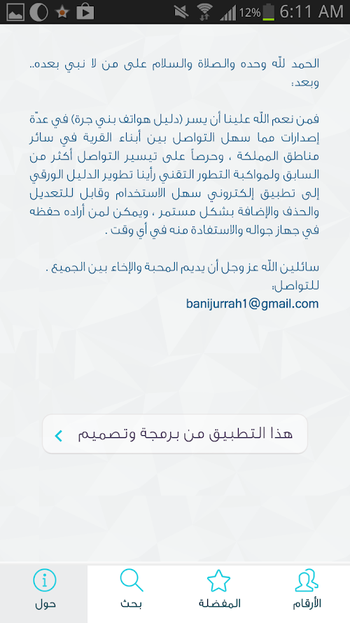 فمن نعم الله علينا أن يسر (دليل هواتف بني جرة) في عدّة إصدارات مما سهل التواصل بين أبناء القرية في سائر مناطق المملكة ، وحرصاً على تيسير التواصل أكثر من السابق ولمواكبة التطور التقني رأينا تطوير الدليل الورقي إلى تطبيق إلكتروني سهل الاستخدام وقابل للتعديل والحذف والإضافة بشكل مستمر ، ويمكن لمن أراده حفظه في جهاز جواله والاستفادة منه في أي وقت .