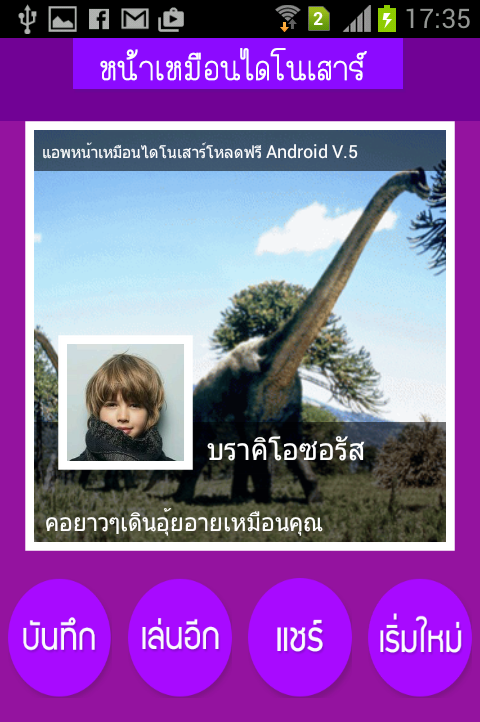 This version of หน้าเหมือนไดโนเสาร์ Android App comes with one universal variant which will work on all the Android devices.