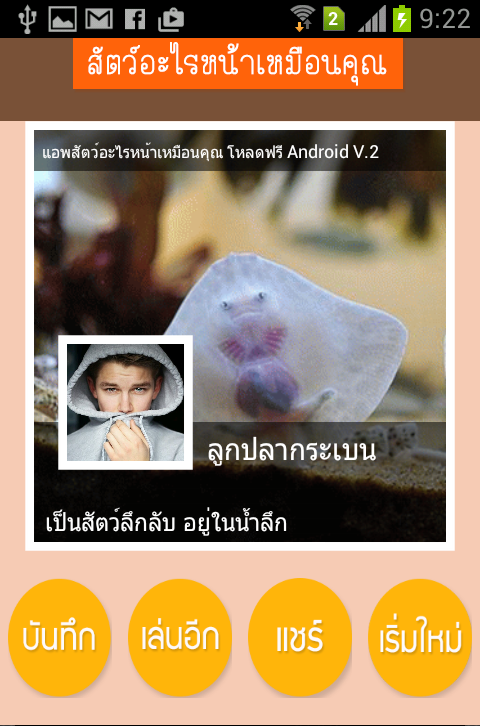 This version of สัตว์อะไรหน้าเหมือนคุณ Android App comes with one universal variant which will work on all the Android devices.