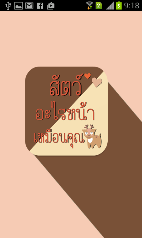 ไอ้หน้าหมา เพื่อนหน้าปากซอยตะโกนเรียกเสียงดังลั่น เอ๊ะ ทำไมมันรู้ว่าเราหน้าคล้ายหมา มันรู้ได้ไง มานี่ๆ เราจะบอกวิธีให้ เพื่อนมันรู้ว่าเราหน้าเหมือนสัตว์ด้วย แอปนี้แหละ แอปสัตว์อะไรหน้าเหมือนคุณ อยากรู้ไหม สัตว์อะไรหน้าเหมือนเพื่อนคุณ  คุณก็ลองใช้งานแอปนี้ดูสิ ละจะได้รู้ว่าสัตว์อะไรหน้าเหมือนคุณกับเพื่อนคุณ