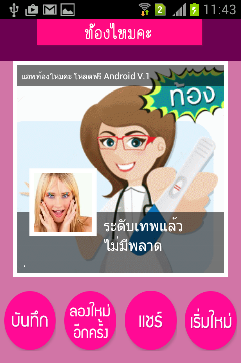 หมายเหตุ : App ท้องไหมคะ ทำมาเพื่อความสนุกสนานเท่านั้นนะจ๊ะ แต่ถึงจะสนุกแต่มันก็สามารถทำนายจากหนังหน้าคุณได้แม่นยำเชียวนะ ระบบประมาณผลจะทำการประมวลผลจริงๆ โดยการใช้ระบบ Face Recognitionโดยใช้การคาดเดาจากอาการ และ ลักษณะท่าทาง จากรูปของคุณ เพื่อความสนุก เฮฮา มุ้งมิ้ง ฟรีงฟริ๊ง