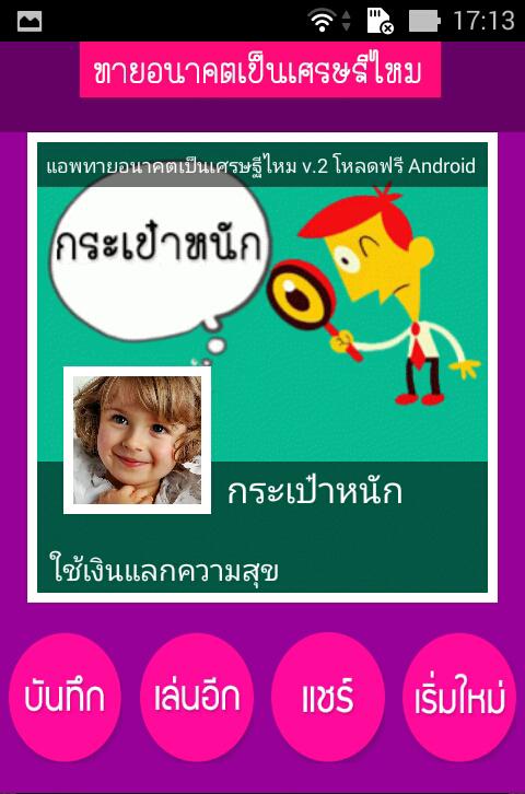 If you are looking to download other versions of ทายอนาคตเป็นเศรษฐีไหม Android App, We have 1 version in our database. Please select one of them below to download.